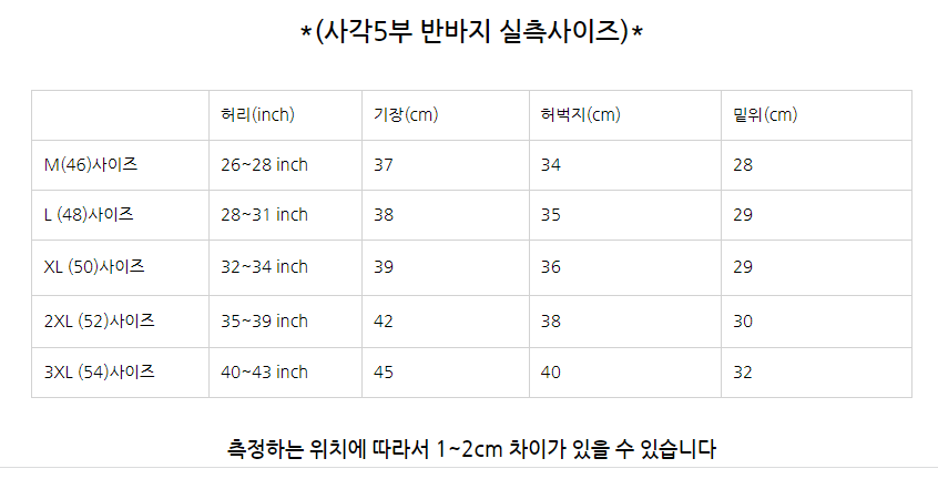 *일반형(사각)반바지 기장 39cm
