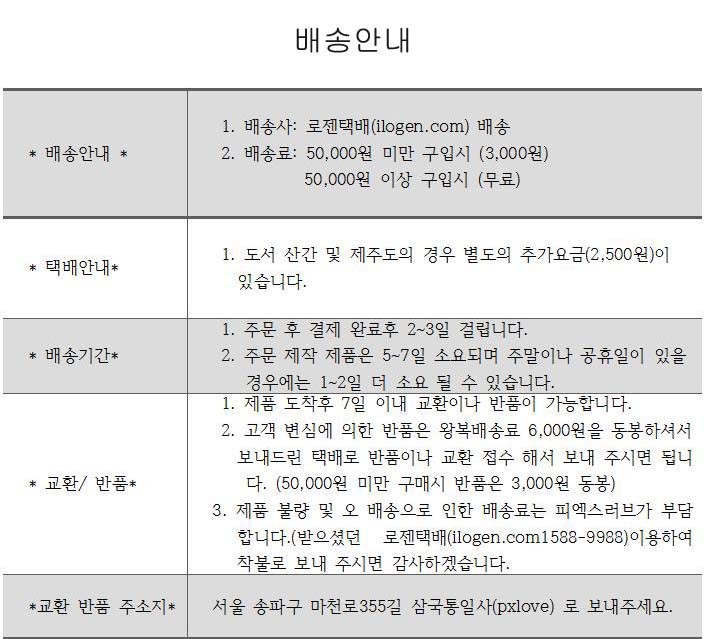 피엑스러브에서 자체 제작한 국내산 제품으로